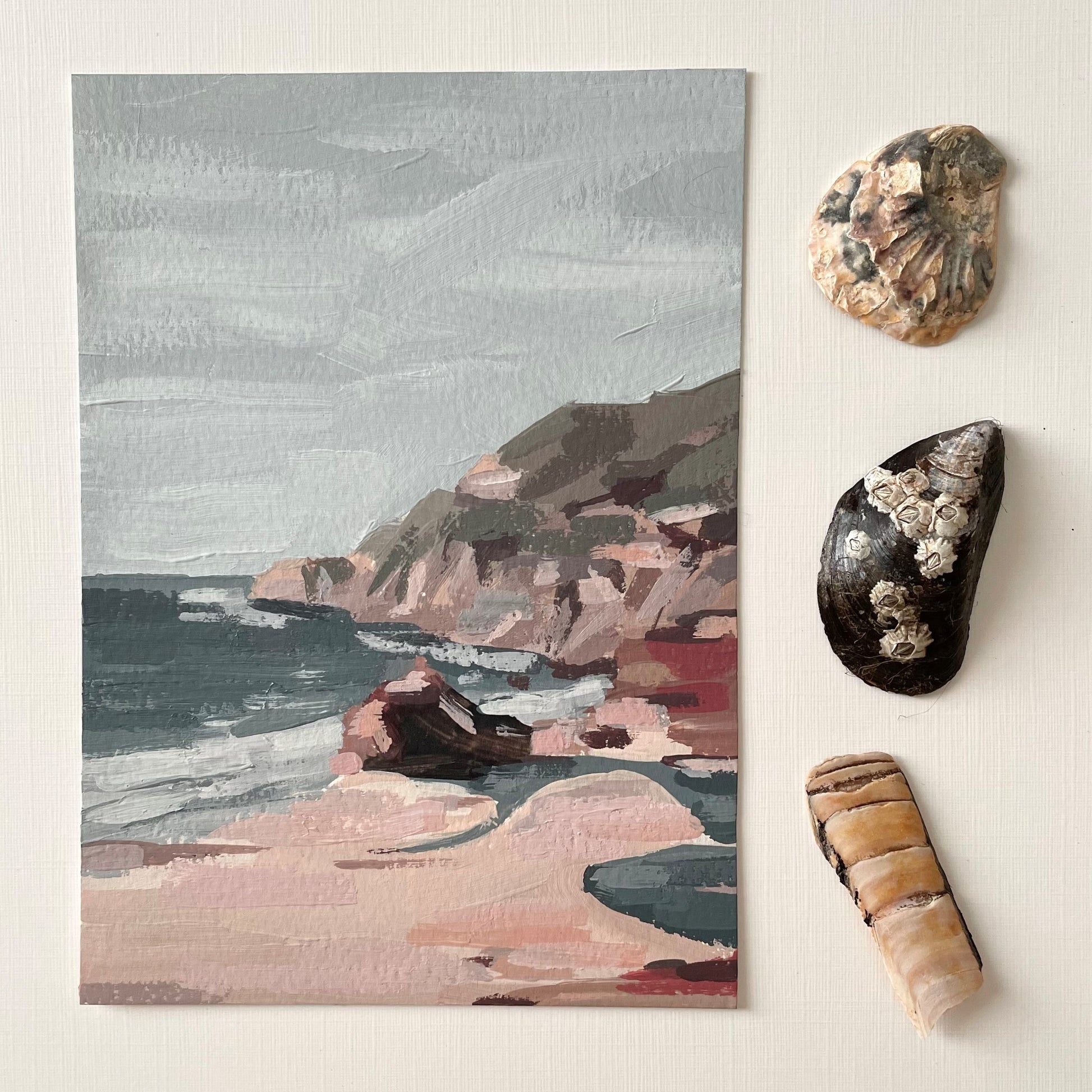Original acrylic painting inspired by the rugged coastlines of Britain Finished painting measures approximately 5" x 7". Signed and dated on the back.